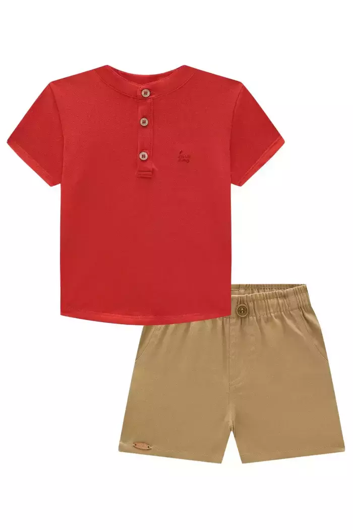 Conjunto de Bata em Piquet e Bermuda em Sarja Luc.boo