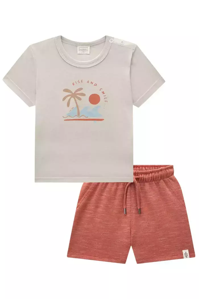 Conjunto de Camiseta e Bermuda em Malha Bicolor Luc.boo