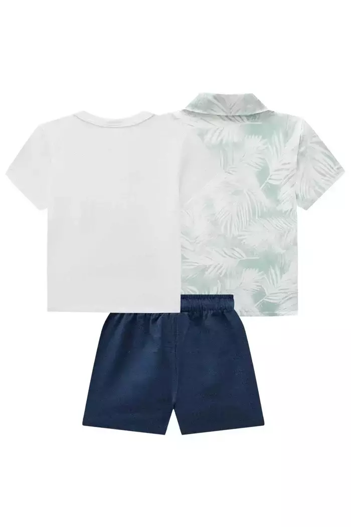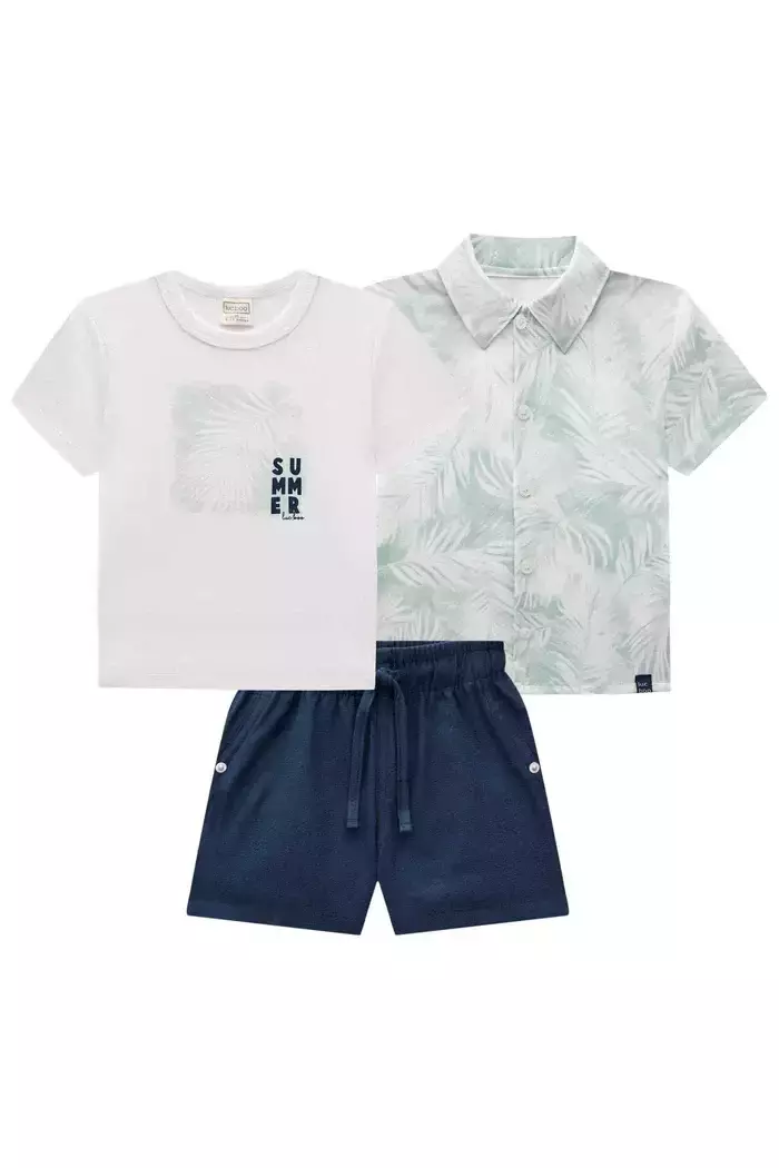 Trio em Camisa com Bermuda em Linho Luc.Boo
